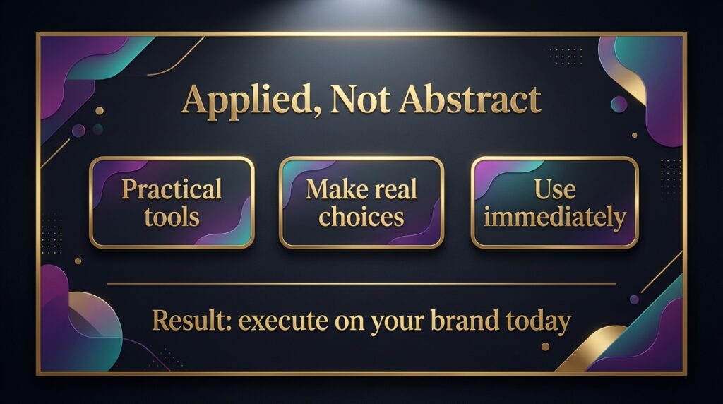 The framework shows how to build identity around meaning, not trends. This matters because trends fade and clarity endures. You walk away with a brand that is recognizable, defensible, and aligned with your audience.