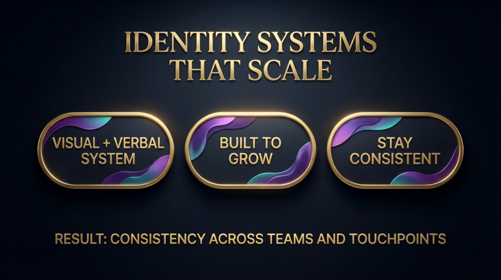 Yes—its focus is on translating strategy into cohesive visual and verbal identity systems that scale across touchpoints.