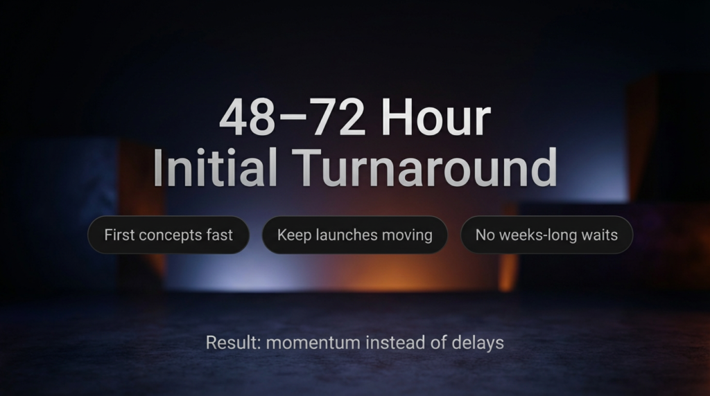 You receive first concepts within 48–72 hours for each request. This matters because slow design stalls campaigns and launches. The practical result is momentum instead of waiting weeks for drafts.